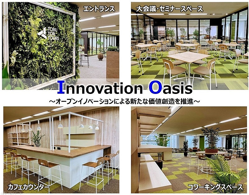 東武トップツアーズは2023年10月2日、オープンイノベーションの拠点として「Innovation Oasis(イノベーションオアシス)」を東京・品川に開設した。大会議・セミナースペース、コワーキングスペース、カフェカウンターをそなえ、行政・自治体・観光団体・企業などが集まり、意見を交わす場を提供する。