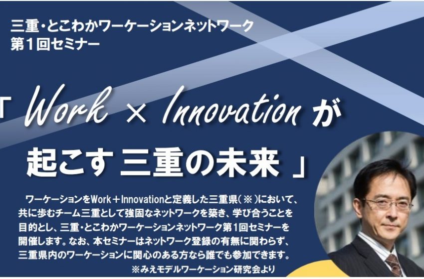 - タイトル:とこわかワーケーションネットワーク第1回セミナー「Work × Innovationが起こす三重の未来」※「三重・とこわかワーケーションネットワーク」登録に関わらず参加可能