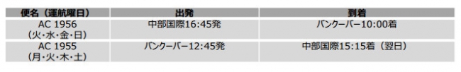 エア・カナダは2017年6月2日から、レジャー路線特化型ブランドのエア・カナダ・ルージュで、中部/バンクーバー線の直行便の運航を開始した。同路線は2017年6月2日~10月27日まで、最大週4便で運航。これにより、エア・カナダは今夏、日本/カナダ間で最大週39便を運航することになる。