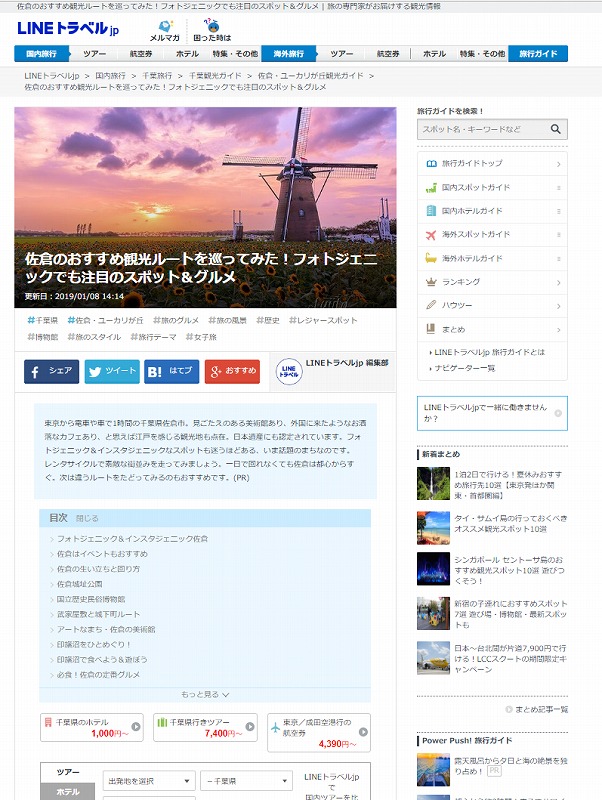 具体的には、運営する旅行比較サイト「LINEトラベルjp」と連動した旅行メディアをベースに、記事(コンテンツ)制作はもちろん、自治体やDMO、観光局に対する営業・コンサルティングから、企画提案、検索エンジンやSNSも含めたカスタマージャーニーに応じた閲覧フローも同時に提案。記事の発信後も、ページを訪れた読者の属性、流入状況、旅行商品に到達するコンバージョンの分析を行ない、その結果をレポートする。近々には、現地の集客状況の分析も行なう予定だ。