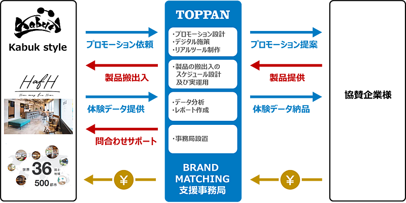 このほか、「HafH」の宿泊施設に凸版印刷と提携している製品のプロモーションの場を設置。 宿泊施設のメディア化をはかるとともに、各施設と親和性の高いメーカー商品を設置することで、ユーザーに製品の価値体験を提供していく。