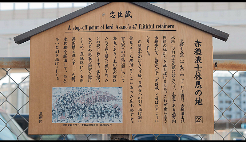 平田氏は何回も下見をして、300年以上前に志士が歩いたルートをどう情緒的に見せるかを念頭に、カメラマンと撮影ポイントを入念に打ち合わせすることから開始。資料を兼ねて浮世絵の画像を挿入したり、BGMの効果を工夫したり、アイデアを凝らした。こうして完成したガイドツアーを視聴すると、現代の日常の風景がたちまち忠臣蔵の舞台に感じられる。