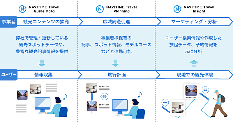 ナビタイムジャパンは自治体やDMO、企業等を対象に、広域周遊観光の促進を支援する「NAVITIME Travel Platform」の提供を開始した。旅程作成機能やマーケティングツールなど、ナビタイムがもつ周遊観光の促進に効果的なソリューションを集約するもの。地域内の観光地と移動の情報提供から予約、分析までワンストップで実施可能とし、自治体や企業が取り組む観光客の周遊促進や消費拡大をサポートする。