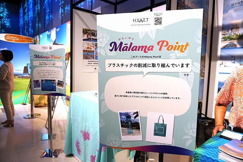 ハワイ関連企業のブースでも、各社の最新情報や商品サービスにあわせ、「マラマポイント」として各社の「マラマハワイ」の取り組みが紹介された。