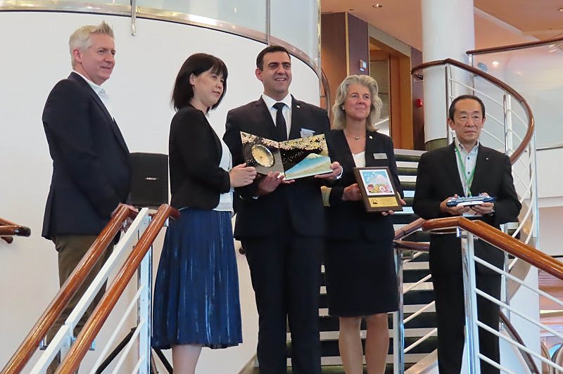 記念式典には、横浜市から港湾局長の中野裕也氏が参加。4年ぶりとなる同客船の横浜寄港に喜びと謝辞を述べると同時に、コロナ禍後の横浜港の状況を共有した。