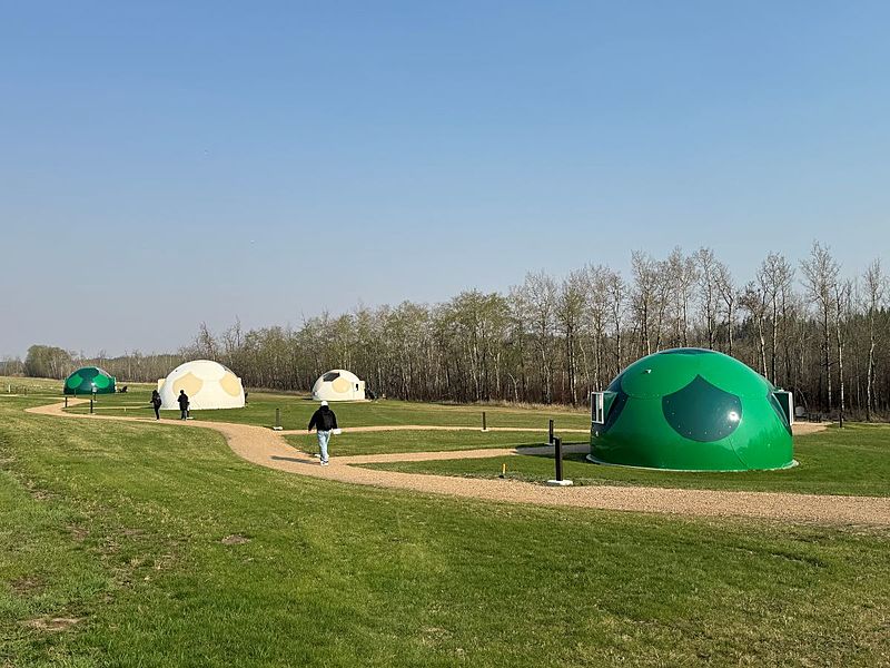 2022年には宿泊施設のロッジを備え、2023年にはドームも完成。688エーカー(2.8平方キロ)の敷地に40室のロッジからキャンプサイト、伝統的な家や荷車などの歴史展示、放牧場とトレイル、農場を併設する複合施設として構成されている。設計から建築、運営も全てメイティが担い、4.86メガワット規模の太陽光発電システムも設置されたネットゼロ施設でもある。宿泊パッケージのほか、季節ごとのアクティビティ体験や伝統工芸ワークショップも提供し、宿泊とアクティビティは単体でも販売されている。