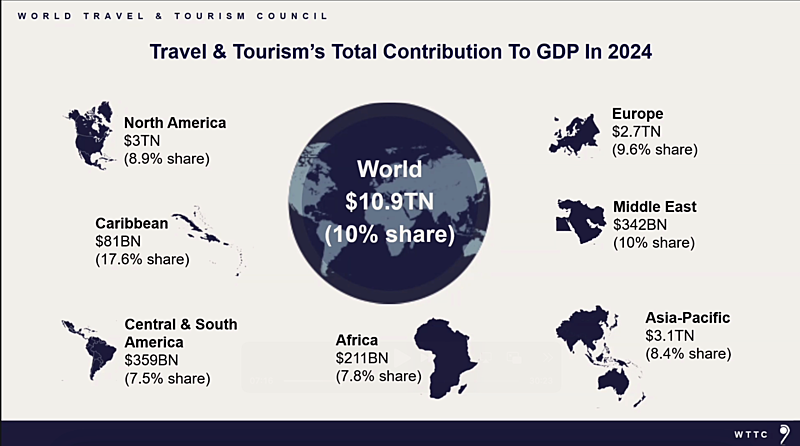 2024年の地域別、観光産業のGDP貢献(発表資料より)