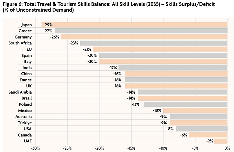 世界の観光産業での新規雇用は2035年までに9100万人予測、一方で労働力不足は4300万人、日本が最も深刻 ―WTTC労働力レポート