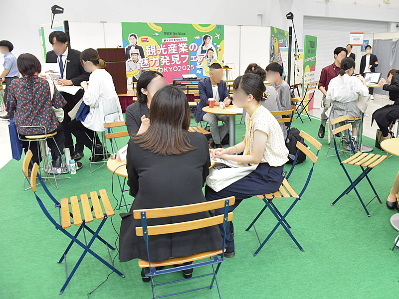 「観光産業の魅力発見フェアTOKYO2025」の交流コーナーの様子東京観光産業ワンストップ支援センターの伊藤玲子氏は、今回のイベントについて、「観光産業はこれからも大きく成長していく産業。これまで就職先として意識していなかった学生や求職者にも、やりがいのある仕事だと感じてもらえる機会になれば」と期待を込める。