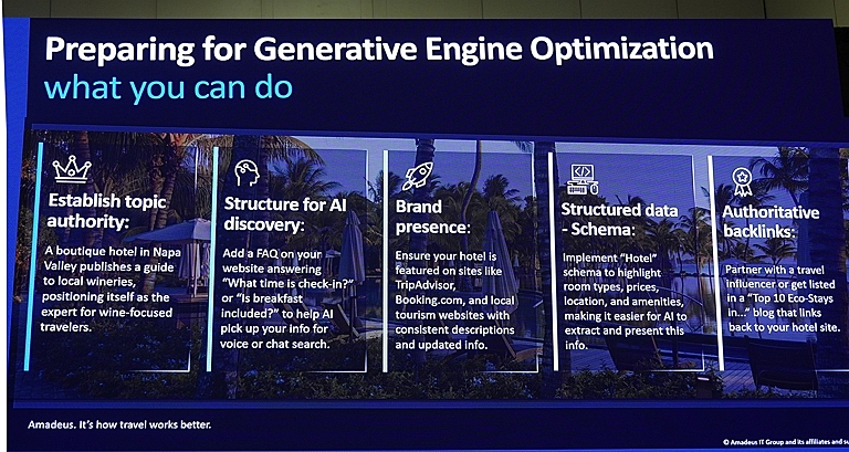 この一例が象徴するように、生成AIは単なる検索結果の提示ではなく、ユーザーの質問に「答え」を返す。つまり、AIによる回答の中で認知されることが新たな戦略の焦点となる。ライト氏は「AIは検索結果を並べるのではなく、回答を提示する。そのため、ホテルや観光施設はAIが読み取れる構造化情報を持つことが重要になる」と指摘する。