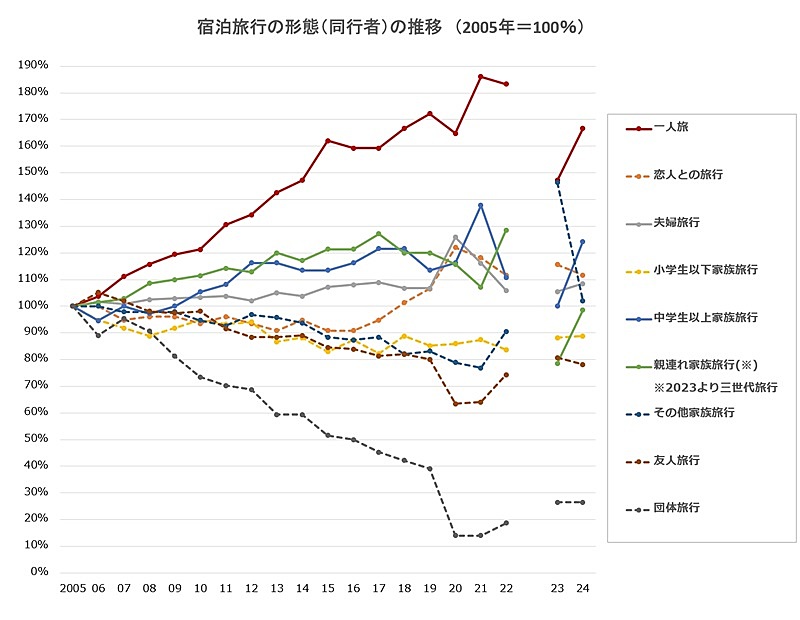「じゃらん宿泊旅行調査2006~2023」「じゃらん観光国内宿泊旅行調査2024~2025」(リクルートじゃらんリサーチセンター調べ)をもとに筆者作成 (注)2023年分より調査手法の変更あり