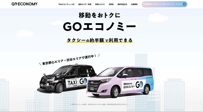 タクシーアプリ「GO」の相乗りサービスが本格展開する。「GO ECONOMY(ゴーエコノミー)」へと名称変更し、運行エリアも東京都心部12区に拡大。2席同時予約、対応車両台数拡大などもおこなう。