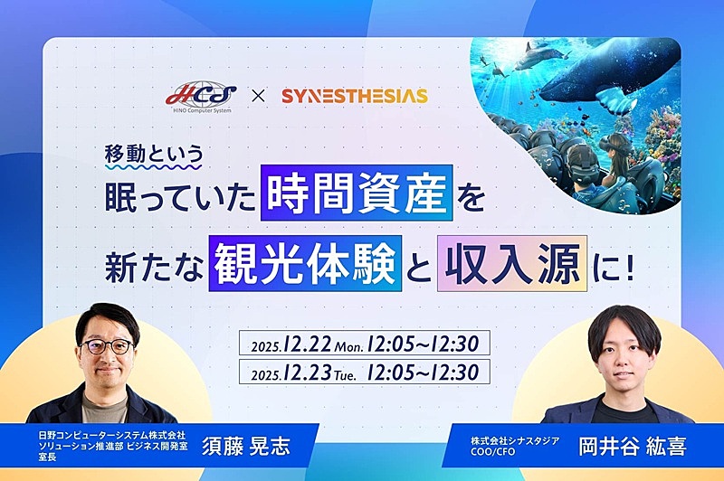 日野自動車グループのITソリューション会社である日野コンピューターシステムが、2025年12月22日と23日、「移動という“眠っていた時間資産”を新たな観光体験と収益源に!」をテーマに、ウェビナーを開催する。受講料は無料(事前登録制)。