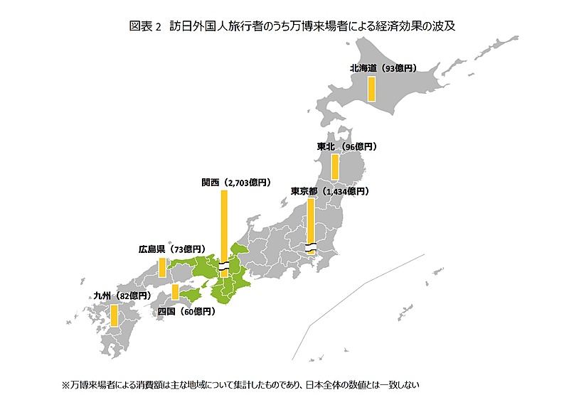 また、万博来場者156万人の関西での消費額は2703億円。消費全体(6085億円)の半分以上が関西以外での消費だった。
