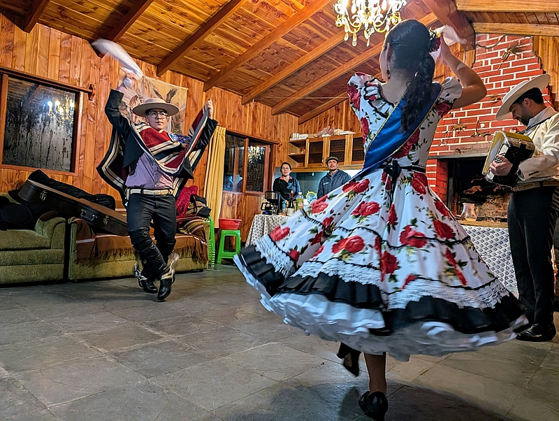 先住民の家庭を訪ねて伝統スポーツや毛糸作りを体験し、食卓を囲む時間。あるいは、欧州系チリ人に受け継がれてきた伝統ダンスを鑑賞し、最後は全員で踊るひととき。これらを通じて、地域の歴史とアイデンティティを深く理解する構成となっていた。