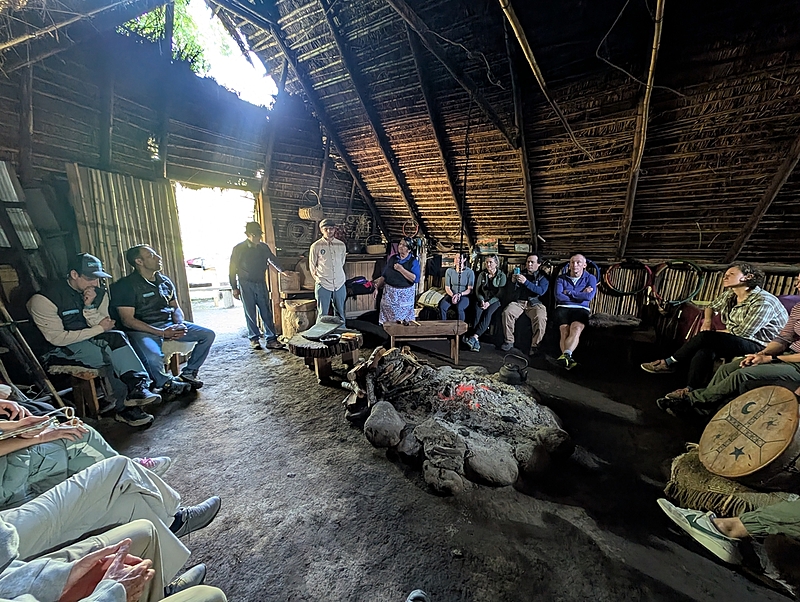 先住民の伝統的な住居での異文化体験。交流のあとには伝統料理が振る舞われた
