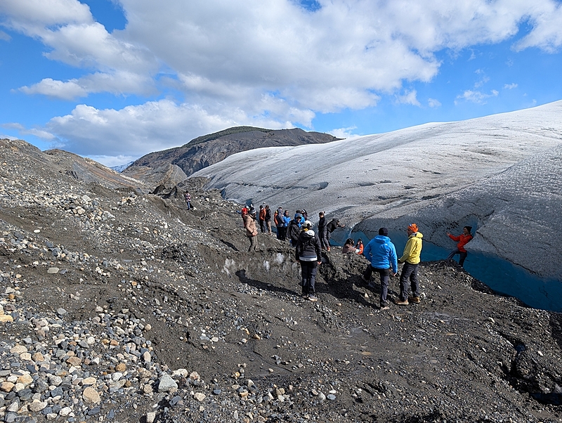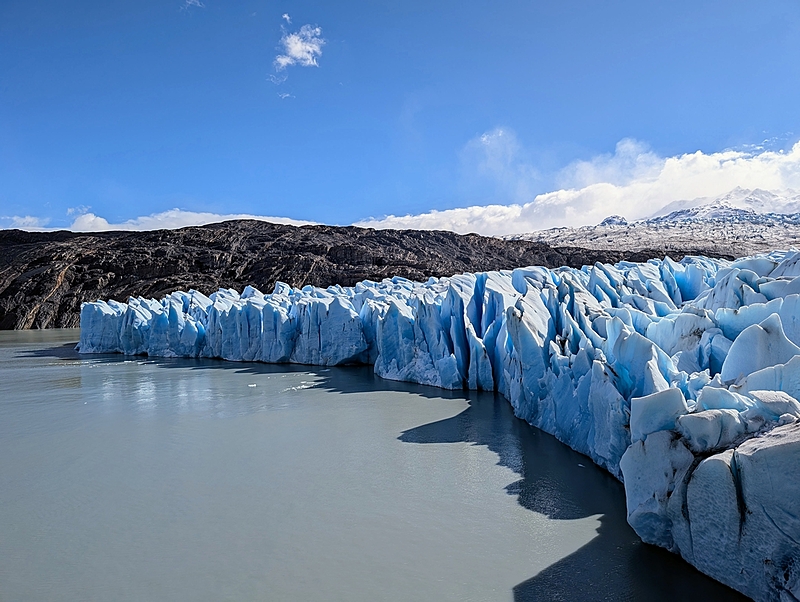 ※写真:プエルトナタレス近郊のグレイ氷河。水面上だけでも高さ30メートルに及ぶ氷壁が参加者を圧倒。