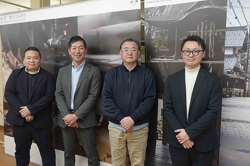 (左から)越前市の軽部氏と大塚氏、越前観光協会の宮地氏と上城戸氏