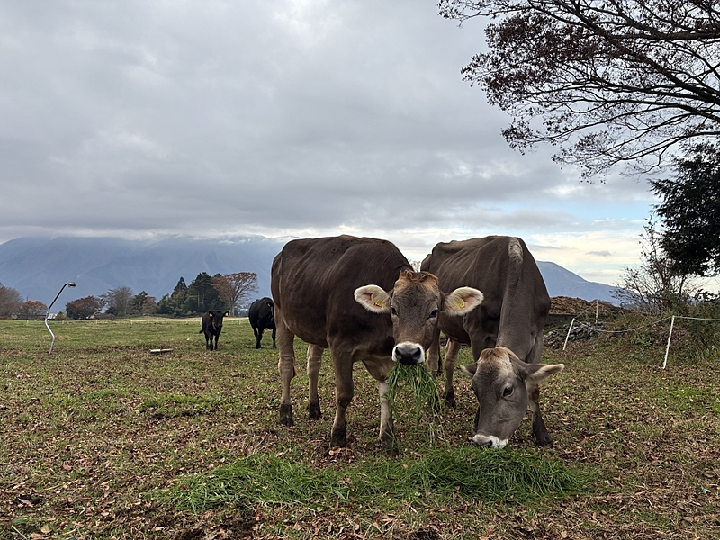 見学ツアーでは、実績認証されている牧場「Mt.Fuji Craft! Farm」を訪れた。この牧場では、自然放牧のブラウンスイス牛とブラウンスイスとホルスタインのミックス牛が心身ともに健康的に暮らしている。牛舎の入口は常時解放。牧場主の金子さおりさんによると、牛たちは自由意志で牛舎か牧草地で過ごすという。自由奔放に暮らす牛たちは愛嬌があり、人懐っこい。