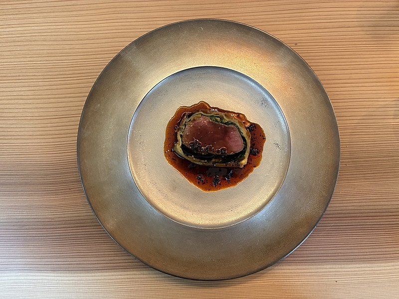 「富士河口湖町ジビエ処理加工施設」からのシカ肉は「鹿のパイ包 香茸ソース」、「Mt.Fuji Craft! Farm」からのチーズは「金子さんのカンマベールと柿」として提供。また、アニマルウェルフェア認証でアチーブメント認証を受けている「清泉寮ジャージー牧場」からは、ジャージー牛を使った「オーガニックジャージービーフ腿肉のロティ」が振舞われた。基本的には乳用牛であるジャージー牛は流通量が少ないく希少価値が高い。高タンパク低脂肪で、βカロチン、ヘム鉄、オレイン酸などの健康要素やイノシン酸やグルタミン酸などの旨味成分も含まれているという。