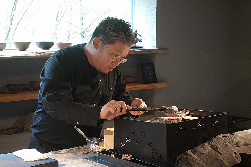 昼食は、西湖湖畔にある「Restaurant SAI 燊」。シェフの豊島雅也さんは、富士山麓の食材をメインに自然からインスピレーションを受けた独創的な料理を提供している。見学ツアーでは、見学先のシカ肉やチーズに加え、山梨県産の肉、魚、野菜を使用した「1日限定の料理」を体験。また、料理1つひとつにあわせてソムリエが厳選した県産酒やノンアルコールドリンクとのペアリングを楽しんだ。