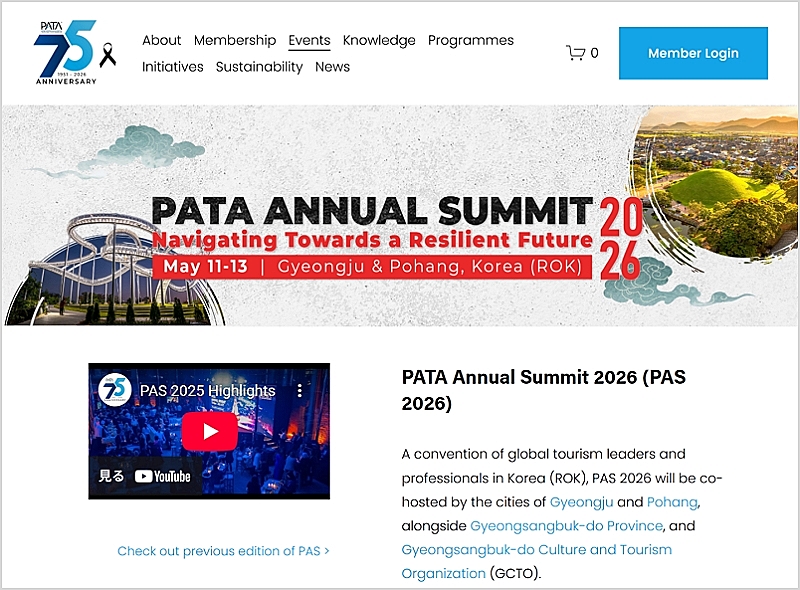 太平洋アジア観光協会(PATA)は2026年5月11~13日、韓国で年次サミット「PATA ANNUAL SUMMIT 2026(PAS2026)」を開催する。会場は、慶尚北道(キョンサンブクド)の最大都市である浦項(ポハン)と、同じ道内の慶州(キョンジュ)の2都市。