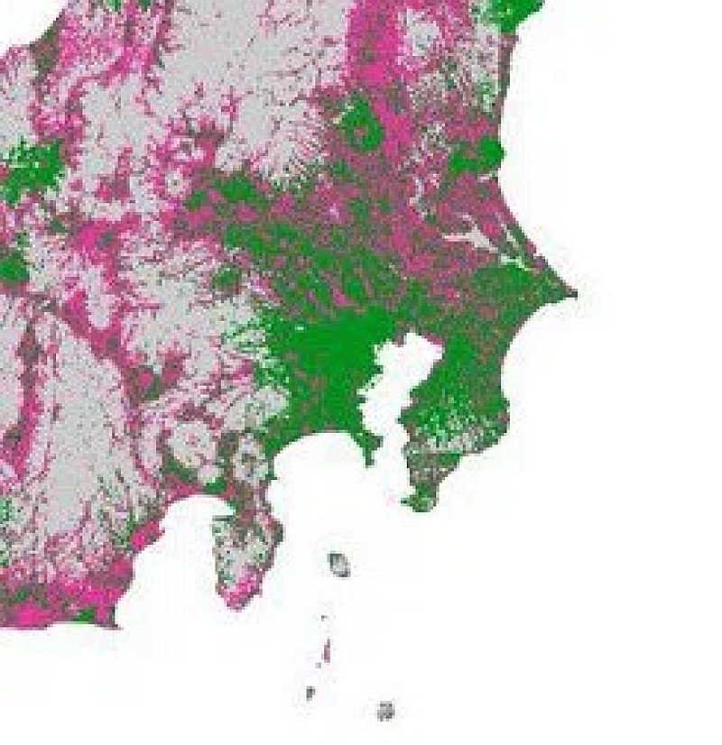 まず注目すべきは、関東平野における「緑色の集積」です。