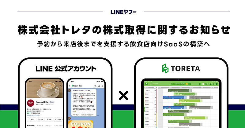 LINEヤフーは、飲食店向けSaaSを提供するトレタ社の発行済株式を取得した。今後、所定の手続きを経て同社の子会社化する方針だ。