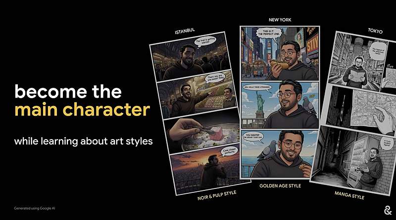 コミックポストカードは、シティガイド機能をさらにクリエイティブな拡張として機能させたもの。旅先で、好きな絵のスタイルやその時の気分を選ぶだけで、その街の風景を反映させた、「マンガ風の思い出作品」を作り出すことができる。また、この機能ではマンガを作成しながら、自分が選んだアートのスタイル(画風など)について学ぶこともできる。