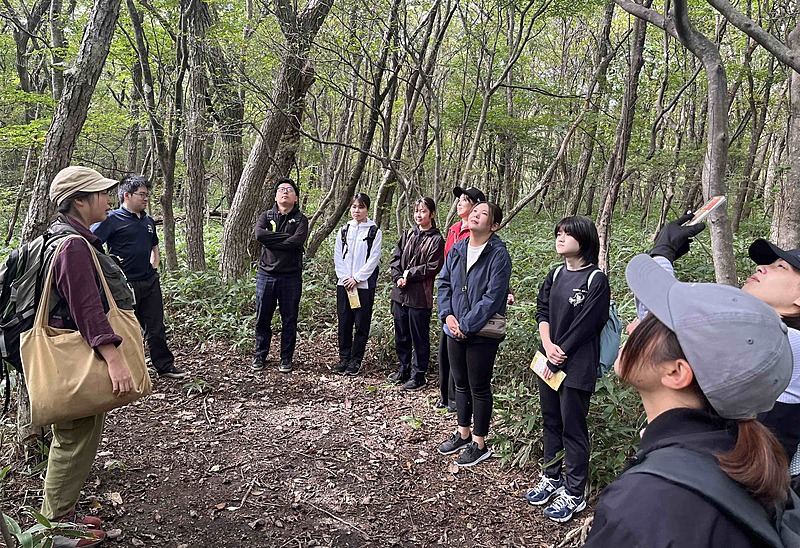 ※写真:「なすワク」のイベントとして開催された森林ガイドウォークの様子。観光で働く参加者が交流を深めた。