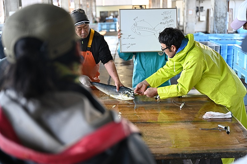 同プロジェクトでは、神経締め師の長谷川大樹氏を招請して技術指導をおこなう。神経締めとは、魚の脳と脊髄を物理的に処理することで死後硬直を遅らせ、旨味成分の分解を抑制する技法。この技術を漁師に直接伝承し、魚の市場価値を飛躍的に向上させる。単なる産直販売にとどまらず、現地でしか味わえない美食体験や漁業体験を組み込んだ高付加価値なツアーを造成し、富裕層を含むインバウンド客や旅慣れた国内層を漁村へ誘致する。