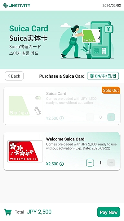 ちなみに、Triplabo Kioskでの購入手順は、トップ画面でSuica購入を選び、必要枚数をセットして購入ボタンを押すだけ。各種クレジットカードやQRコードなどのキャッシュレス決済が可能だ。その場で購入した枚数のSuicaカードが出力される。