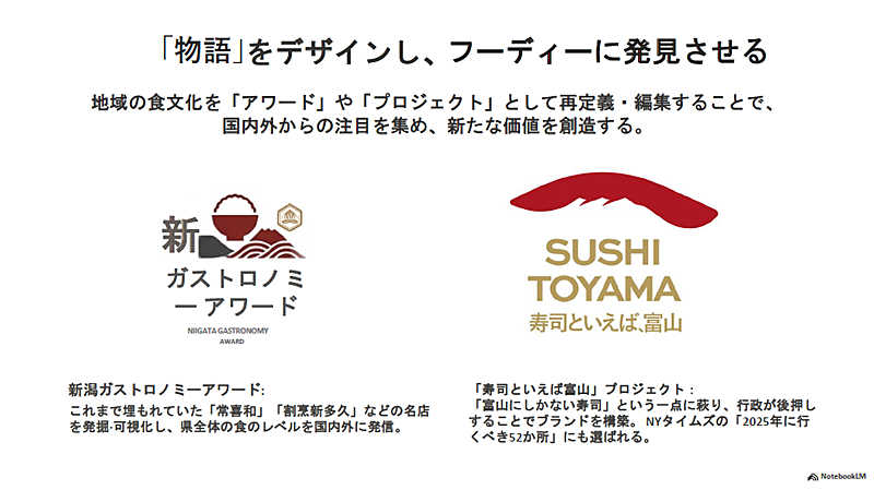 成功例の1つが、新潟県の「新潟ガストロノミーアワード」だ。県内の100の美味しい店を探し、さらに優れた店を個別に選定している。柏原氏は「これはすごいこと。行政は特定の対象を選び出すことを避ける傾向があるが、新潟県は断行した」と、その先進性を強調した。