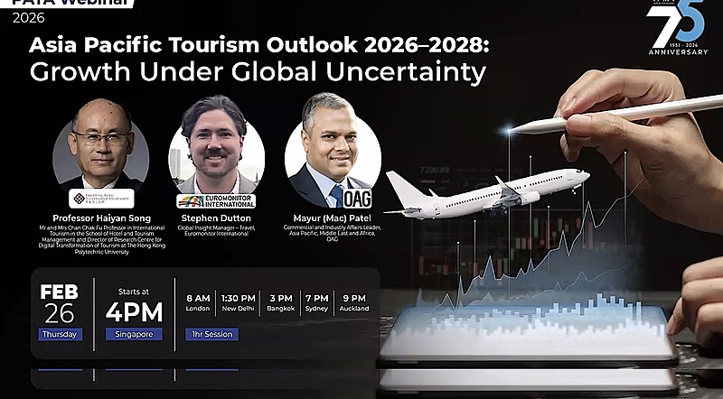 コロナ禍からの回復が続くアジア太平洋地域(APAC)の航空・観光市場は、地政学リスクや中国市場依存・消費者の行動変容といった課題に直面しながらも、2028年は7億6100万人規模へ成長する見通しが示されている。2026年2月末に太平洋アジア観光協会(PATA)が実施したウェビナーで、OAG、香港理工大学、ユーロモニターの専門家が、2028年へ向けた需要予測と市場見通しを多角的に分析した。