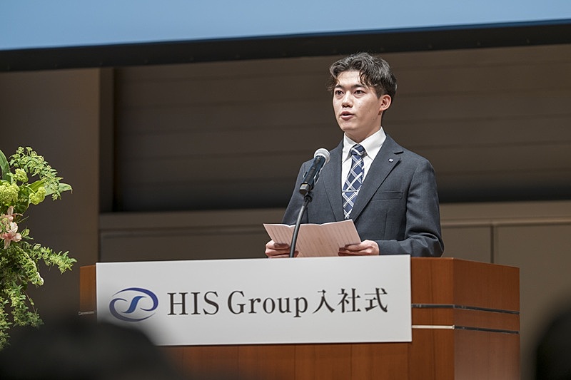 インドネシア・バリ島や中国・海南島といった当時の日本人にとって未知の土地を、アウトバウンドの主要な目的地へと成長させてきたとともに、ハウステンボスやラグーナテンボスの再建といった日本の地方再生の実績もあるHIS。新入社員の伊藤大翔(いとうひろと)さんは「私が旅の持つ力に魅せられた原点は中学生時代の修学旅行。長崎を訪れ、民泊でその土地の方々と交流し、当時HISが運営していたハウステンボスでは胸が高鳴るようなワクワク感を感じました。単に名所を訪れるだけでなく、お客さまの価値観を変え、人生の新しい扉を開くきっかけとなる旅をつくっていきたい」と力強く述べた。