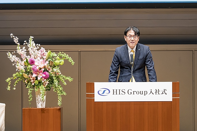 グループが一堂に会した入社式を締めくくったのは、代表取締役社長の澤田秀太氏だ。「2030年に向けて、AIテクノロジーと人との共存を推進し、コロナ前の最高業績を大きく超えていく」と宣言し、新入社員たちに「スピード、挑戦、変化、サプライズ、そしてイノベーション」という五つのキーワードとともに、まずは現場でビジネスの基礎を徹底して学び、失敗を恐れずに自らの殻を破り続けること、その執着心の先にある自己成長こそが、グループの未来を創る原動力になると語りかけた。「HISグループは世界平和の普及をポリシーとしてきた。ポジティブな言葉とマインドを持ち、ともに社会貢献ができる企業へと成長していこう」と語った。