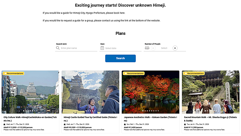 地元のガイドが誇りを持って活動し、質の高い案内で姫路のファンを増やす。その基盤として、姫路CVBが選んだのが、NECソリューションイノベータの「NECツアーガイドマッチング支援サービス」と「NECガイド予約支援サービス」だ。2025年4月、訪日外国人観光客向け「Himeji Concierge Tour」と銘打ち、4つのガイドツアーを商品化。2つの支援サービスを連動させて、姫路CVBの公式サイト「Visit Himeji」で販売を開始した。