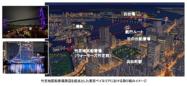 竹芝エリアマネジメント、竹芝タウンデザイン、TFHD digital、東急不動産、東日本旅客鉄道(JR東日本)の5社は、東京・竹芝地区の水辺活性化に向けた新たな取り組みを開始した。竹芝地区船着場(ウォーターズ竹芝前)の管理運営に関するDX試験実装と、エリアの魅力を向上させる夜間クルーズなど企画を共同で進める。