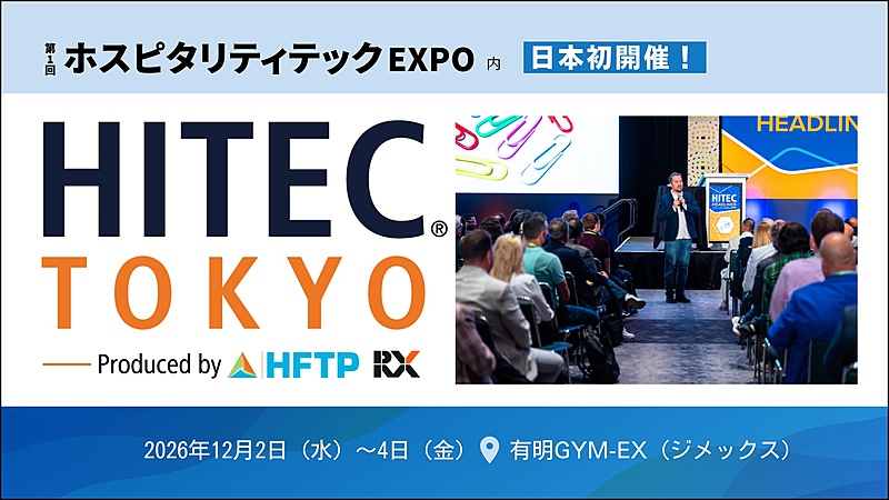 イベント企画・運営をおこなうRX Japan社は、2026年12月2日から4日にかけて有明GYM-EXで開催する「第1回ホスピタリティテック EXPO」で、特別カンファレンス「HITEC TOKYO」を開催する。日本での開催は初めて。