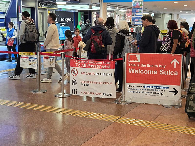WelcomeSuicaを買い求める訪日旅行者。羽田空港第3ターミナルにて(筆者撮影)