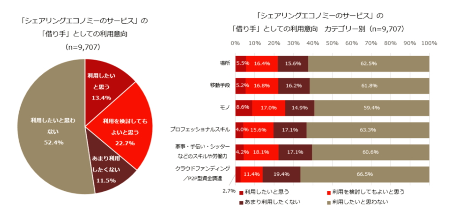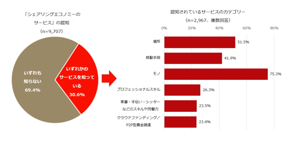 The latest awareness survey on the sharing economy in Japan, conducted by PwC Consulting, finds an awareness rate of 30.6%. The rate is about 20% among people in their twenties, and declines steadily with age.
