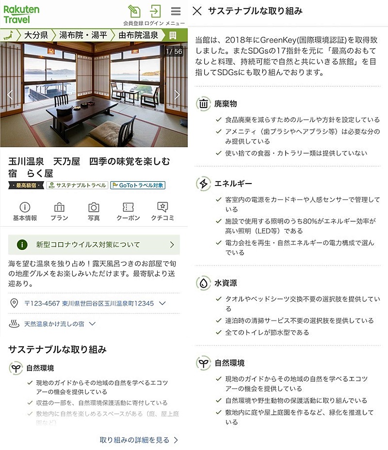 Rakuten Travel, a Japanese leading OTA, has released ‘Sustainable Icon’ to introduce sustainable efforts by hotels and ryokans on its booking platform, as part of ‘Go Green Together’ projects of Rakuten Group. In addition, the OTA will give ‘Sustainable Travel Badge’ to a hotel or a ryokan with designated criteria.