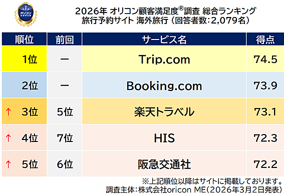 The second was booking.com, jumping from the fifth last year, which was top in ‘easy to book.’ The third was Rakuten Travel, which was top in ‘campaign and benefit.’