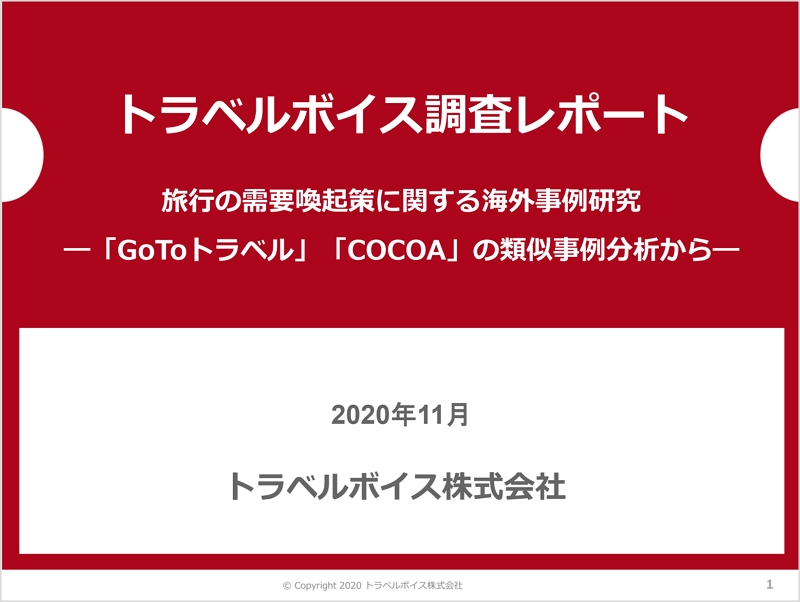 日本では政府主導で「GoToトラベル事業」が進められ、2020年7月22日から10月31日までの間に約3976万泊が利用されるなど、新型コロナウイルスの影響で低迷する国内旅行の需要喚起に一定の効果を挙げている。では、世界各国ではどうか? トラベルボイスが、独自の調査レポート「旅行の需要喚起策に関する海外事例研究」を発表。その内容をまとめた。(2020年11月公開)